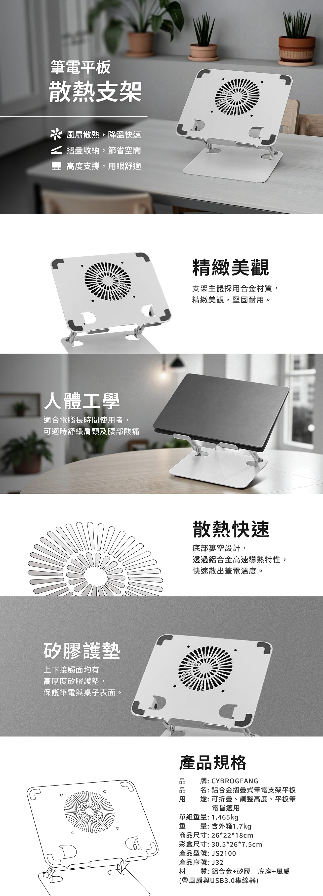 【CYBROGFANG】合金筆電散熱支架(無帶燈)